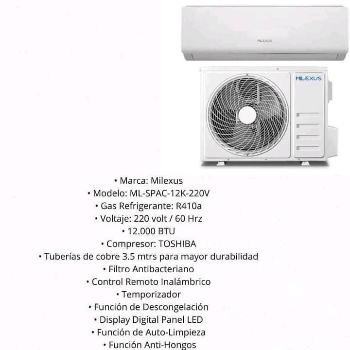 Aire acondicionado split Milexus, de 1 tonelada, precio: 250 usd.