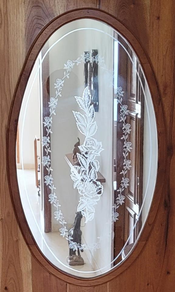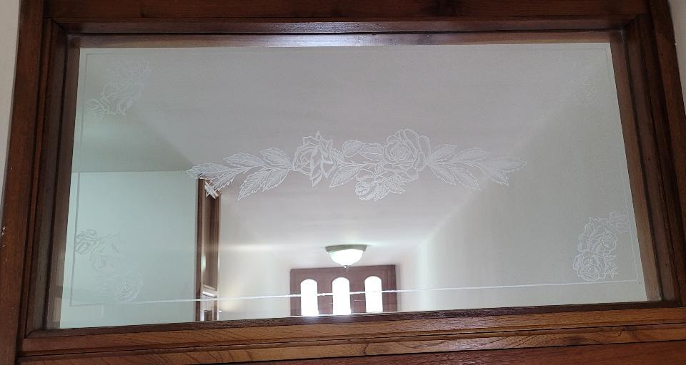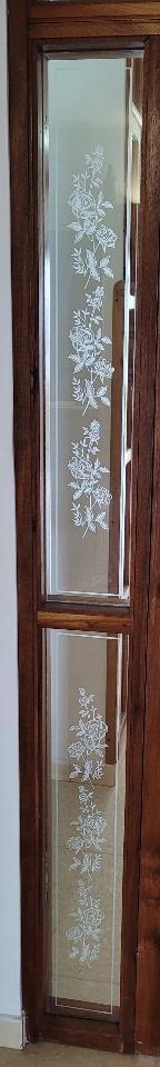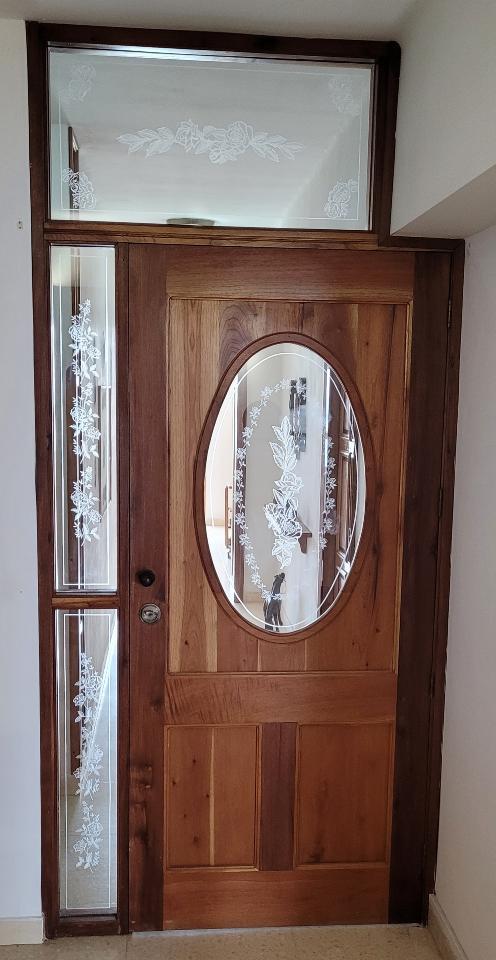 Vendo esta elegante puerta de madera buena y combinada con cristal rotulado a mano con su marco, además se puede combinar con otros elementos de cristal y madera como puede apreciarse en las fotos.