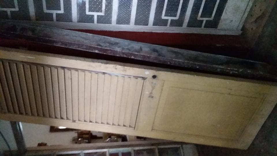 Vendo o cambio puerta antigua de cedro con sus marcos. 73 cm × 226 cm. Posee dos rejillas reclinables y puerta de cristal.