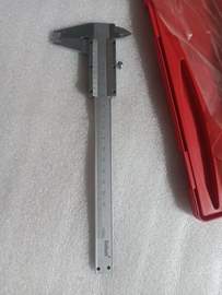 - Escala principal y auxiliar con unidades de medidas en centímetros, milímetros y centésimas de milímetros.