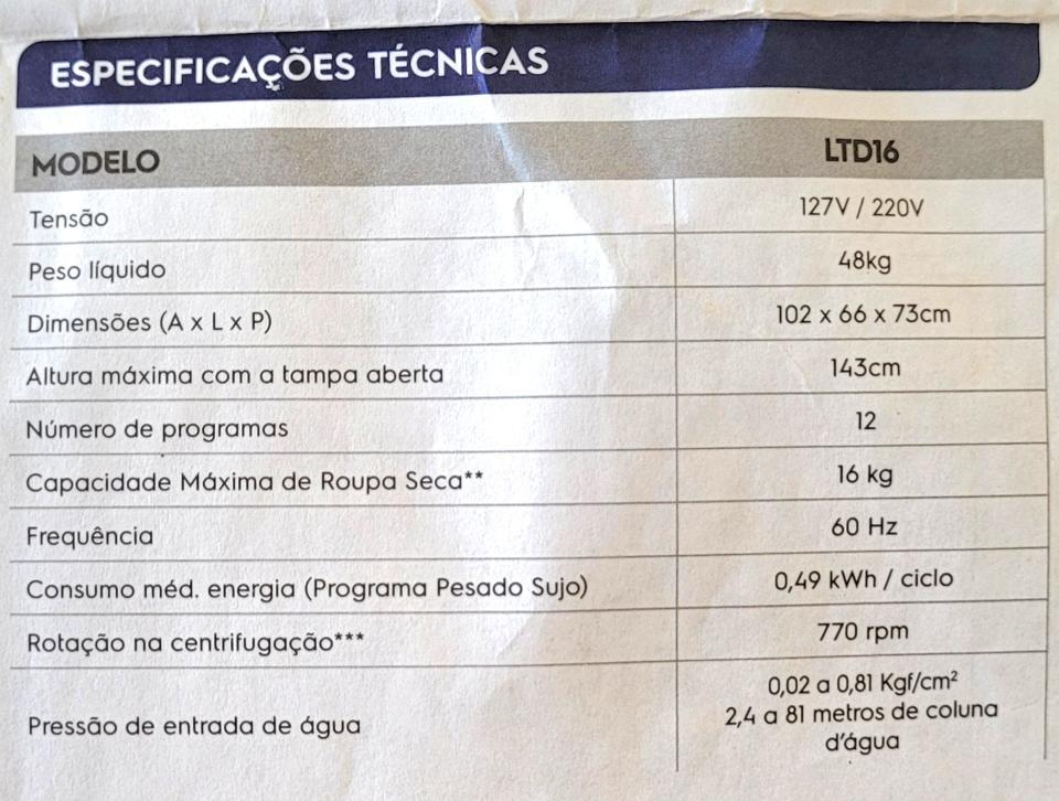 Lavadora grande Electrolux LTD16, 12 programas, de uso