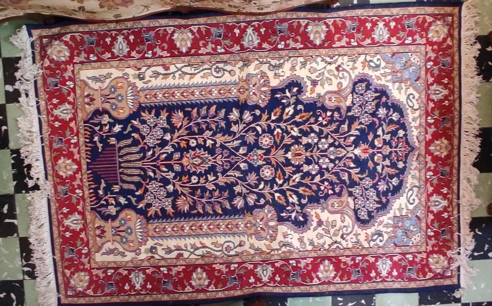 ALFOMBRA TEJIDA A MANO DE CEDA Y ALGODON
