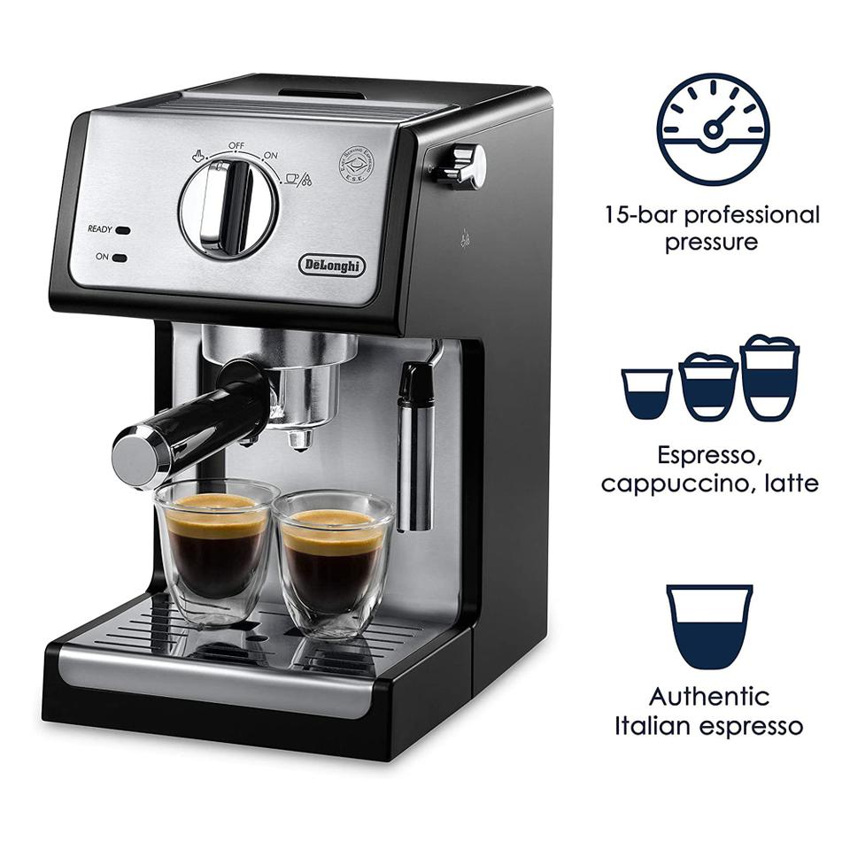 Prepara auténticas bebidas d calidad de barista como las que disfrutas en tu cafetería favorita. Cualquiera que sea su preferencia (espresso individual o doble, capuchino o café con leche. DeLonghi ECP 3420 cuenta con un sistema de capuchino con espumador manual avanzado que mezcla y cuece la leche al vapor para crear una espuma rica y cremosa para bebidas de textura uniforme, tal como a UD le gustan.