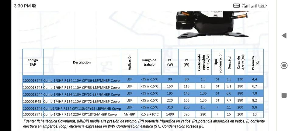 Etiquetas: Máquina de frío, compresor de refrigeración, refrigerador, nevera, un sexto, freezer.