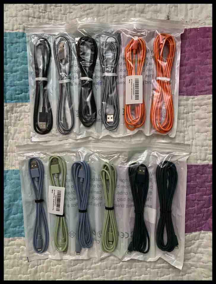 Cables de iPhone de nailon trenzado con certificación MFI, pasan datos y carga. Varios colores disponibles.