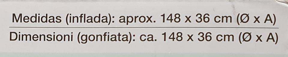 Piscina inflable. Medidas: 148 cm de diámetro, 36 cm de altura. Nueva a estrenar. Incluye manual y kit de parches. Interesados enviar email