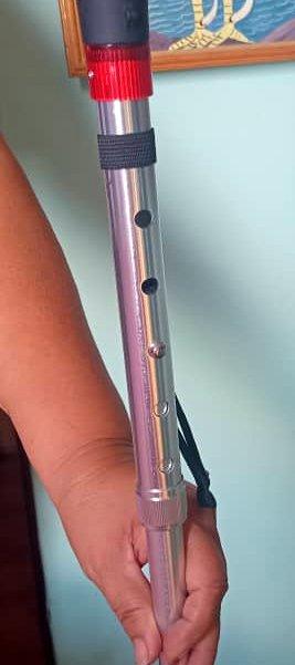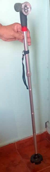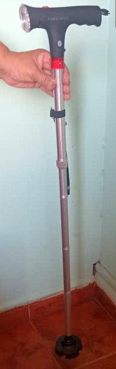 Vendo bastón moderno, desarticulable, con linterna de potente luz de bombillos LED y alarma para caso de accidente o llamar la atención y solicitar ayuda. Usa 2 pilas triple A. La base posee varios puntos de apoyo. Es de tamaño ajustable. Precio 15 USD o el equivalente en CUP